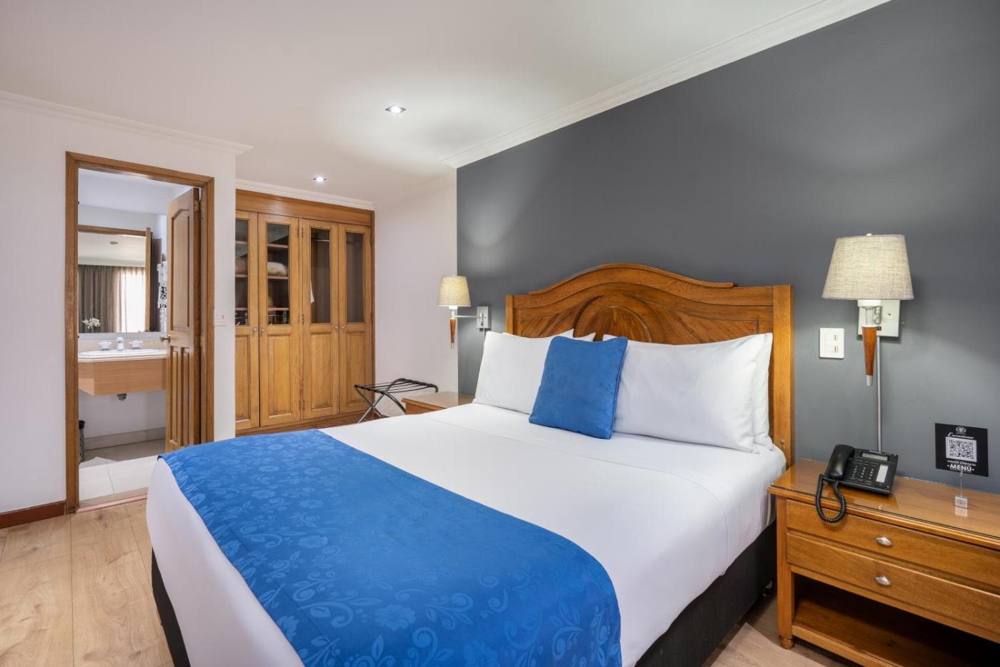 Hotel Egina Bogota offers 44 rooms with cable TV, high-speed WiFi, a work desk and a safe.rooms have private bathrooms and a daily Buffet breakfast is included.