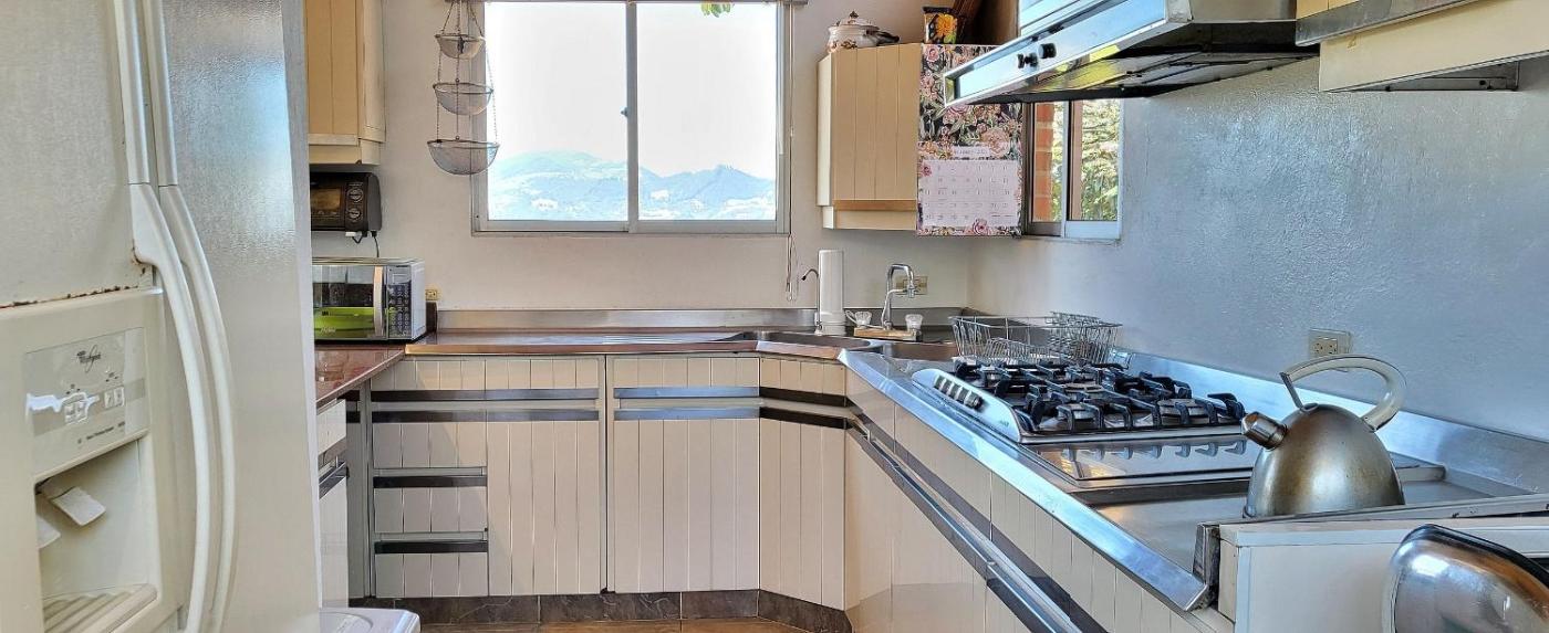 Four-Bedroom House. This holiday homes special feature is the fireplace. Guests will find a stovetop, a refrigerator, kitchenware and an oven in the kitchen. The holiday home also provides guests with a barbecue. The spacious holiday home provides a TV with cable channels, a private entrance, a coffee machine, a seating area as well as mountain views. The unit offers 7 beds.