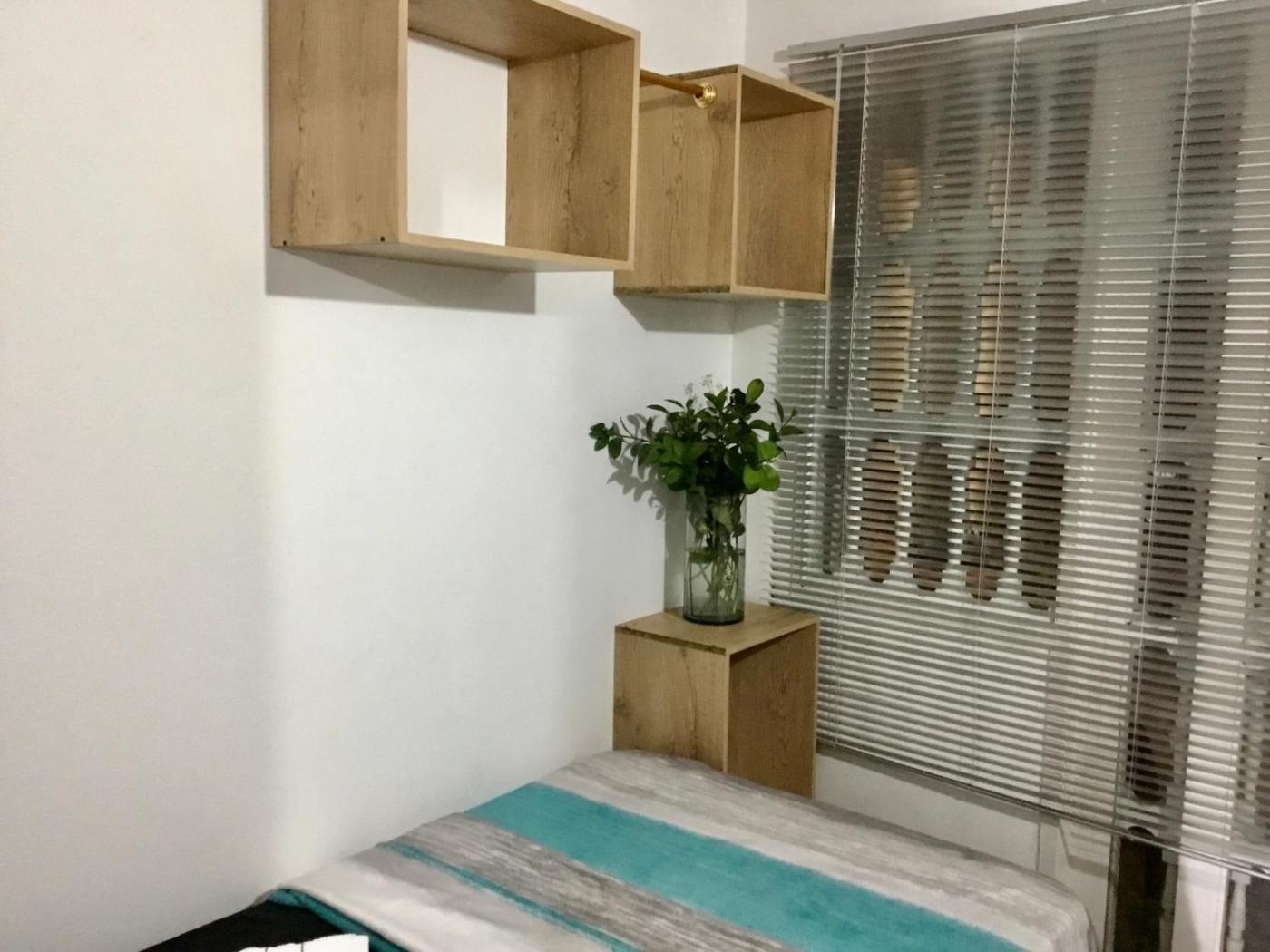 Single Room. The single room has a shared bathroom fitted with a shower and a hairdryer. The single room features a washing machine, a wardrobe, an electric kettle, a flat-screen TV with cable channels, as well as ancourtyard view. The unit has 1 bed. ;