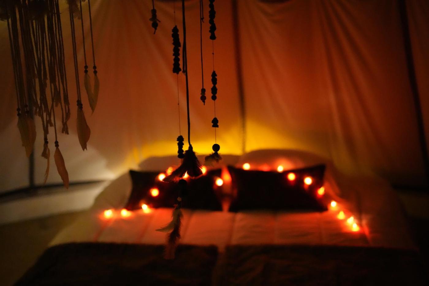 One-Bedroom Tipi. This bungalow offers a fireplace. This bungalow comprises 1 living room, 1 separate bedroom and 1 bathroom with a shower and free toiletries. Guests will find a stovetop, a refrigerator, kitchenware and a toaster in the well-fitted kitchen. The bungalow also provides guests with a barbecue. The bungalow provides a seating area, a dining area, as well as a terrace and a patio. The unit offers 4 beds. ;